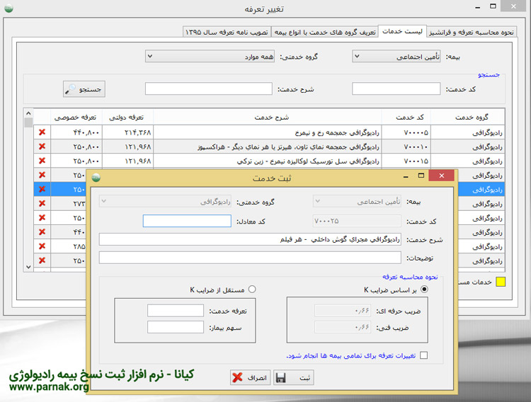 - امکان ویرایش قیمت و مؤلفه های یک کد بیمه ای (حتی نام و شرح خدمت) بصورت دلخواه