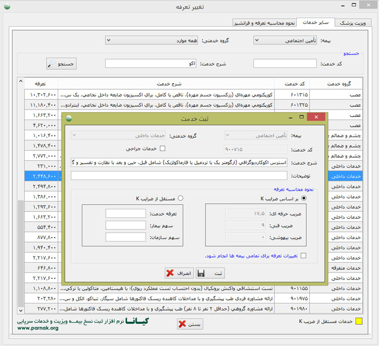 - امکان ویرایش تعرفه ها و ضریب ارزشیابی به صورت دلخواه